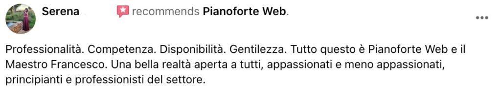 Professionalità. Competenza. Disponibilità. Tutto questo è Pianoforte Web e il Maestro Francesco. Una bella realtà aperta a tutti, appassionati e meno appassionati, principianti e professionisti del settore.