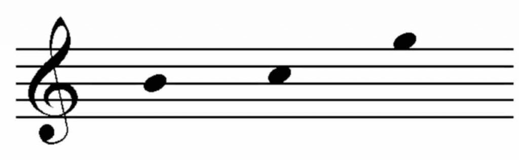 Iniziamo con la nota Do e poi suoniamo in modo discendente le note Si, Sol.