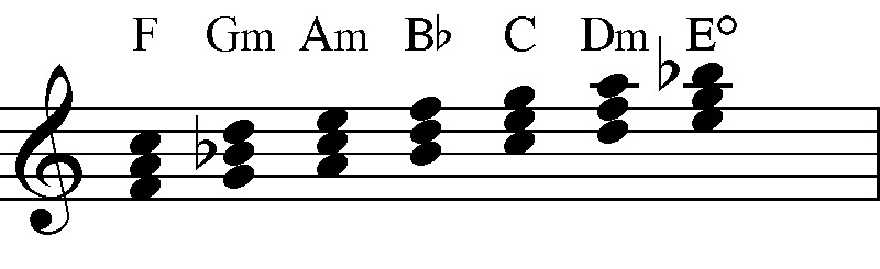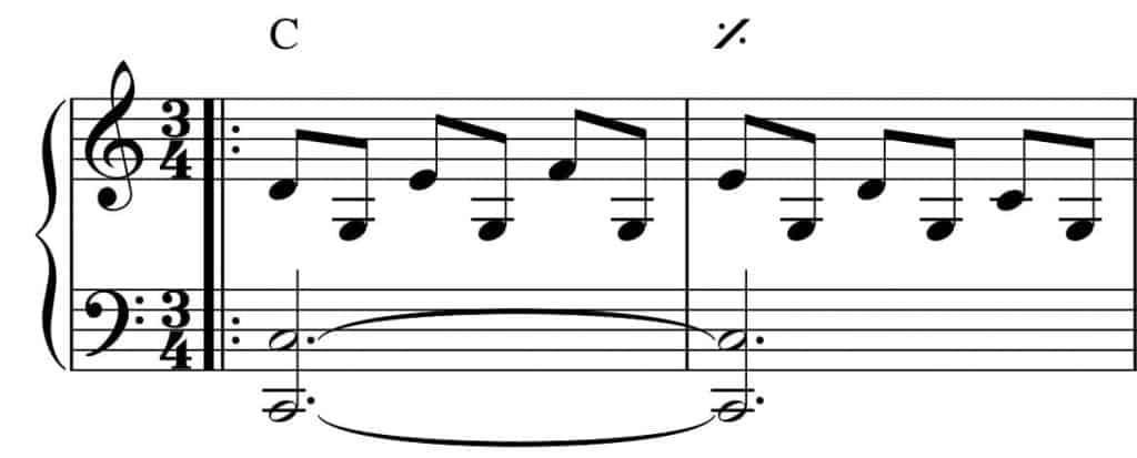 Nell’esempio seguente vediamo la trascrizione delle prime due battute sull’accordo di Do maggiore: