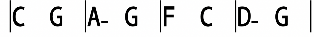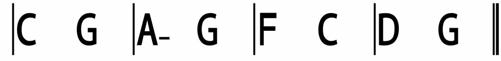 La prima sezione si sviluppa su quattro battute con un ritmo armonico di 2/4 per battuta con gli accordi di Do maggiore (I.º grado), Sol maggiore (V.º grado), La minore (VI.º grado), Sol maggiore (V.º grado), poi Fa (IV.º grado), Do (I.º grado).