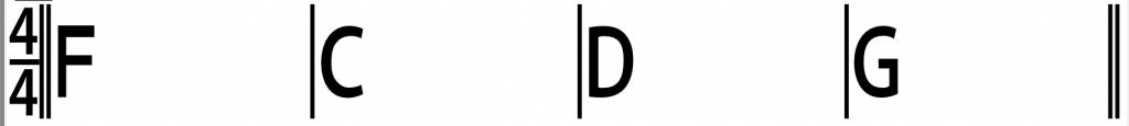 L’introduzione si compone di quattro battute con accordi di Fa Maggiore, Do Maggiore, Re Maggiore e Sol Maggiore.