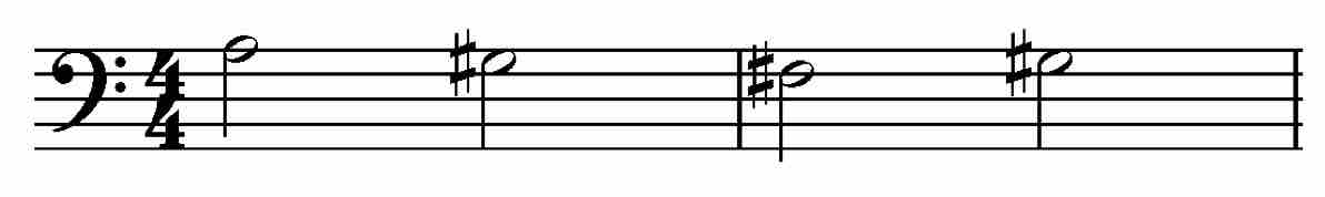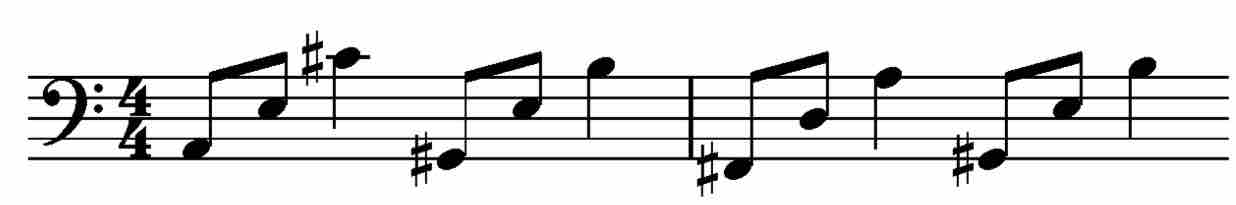 Suoniamo questa linea di basso nella mano sinistra inserendo la melodia nella mano destra: