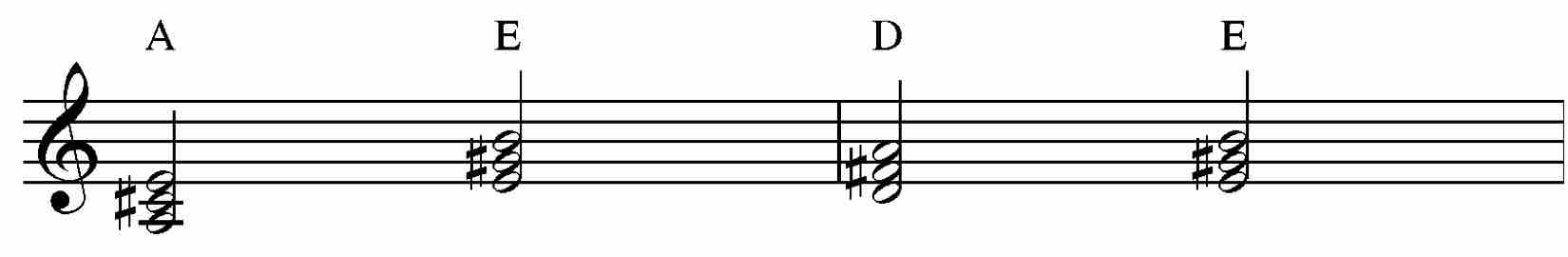 Il brano si compone dei 3 accordi maggiori contenuti nella scala maggiore armonizzata.