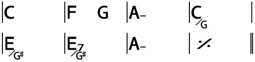 Gli accordi Do/Sol e Mi/Sol# sono definiti slash chords: indicano che la nota al basso non è la fondamentale ma quella che si trova dopo la barra /.