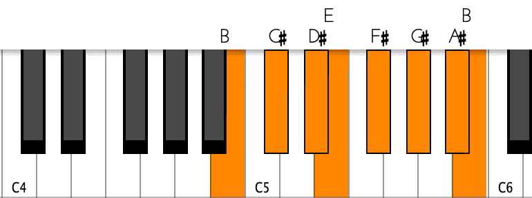 La scala maggiore di SI presenta la stessa diteggiatura delle scale precedenti nella mano destra.