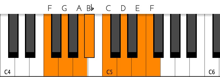La scala maggiore di FA presenta, nella mano destra, un ordine inverso del passaggio del pollice rispetto alle tonalità precedenti.