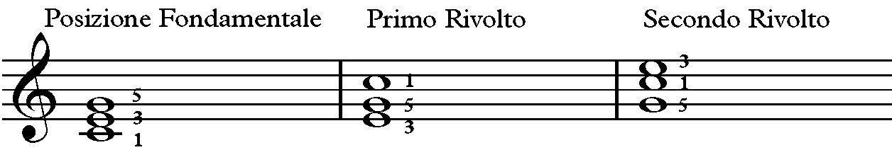 Questa è solo una delle tre possibili posizioni delle triadi che possono essere disposte anche in primo rivolto o in secondo rivolto.